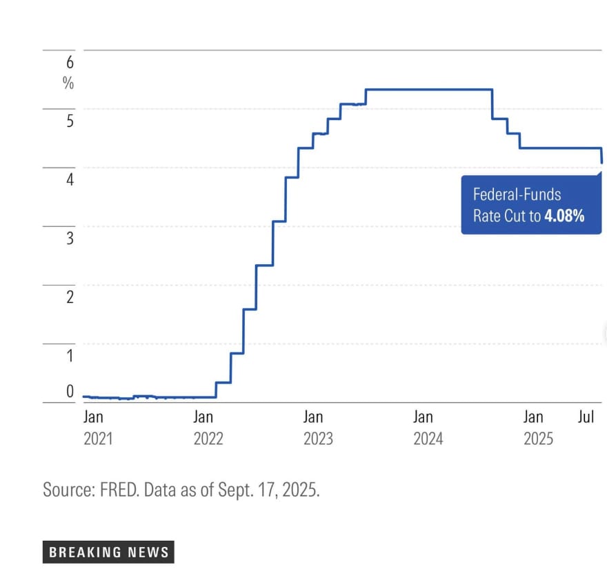 The Federal Reserve just cut rates by 0.25%, bringing the range down to 4.00–4.25%, marking the start of a new easing cycle.