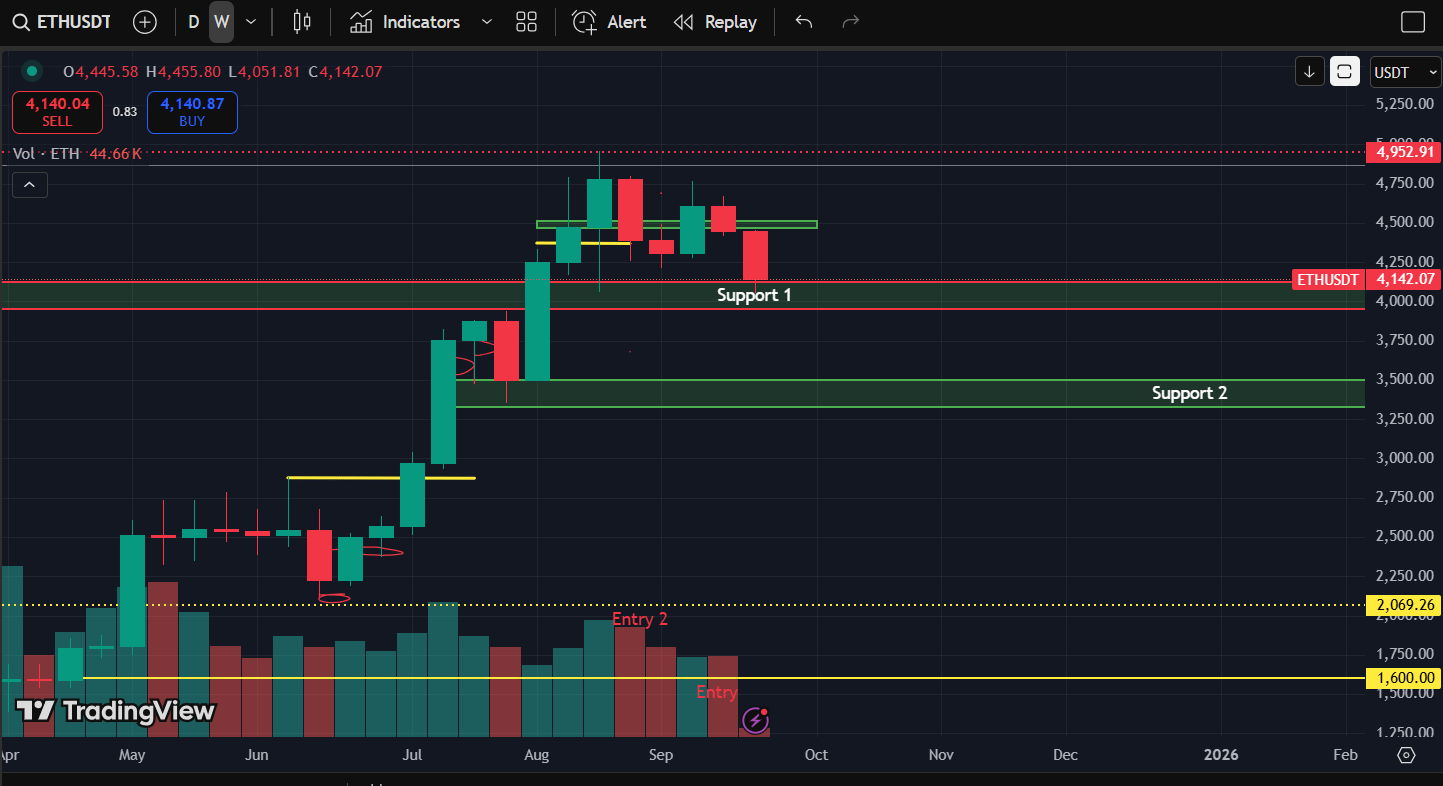 Ethereum lost over 6%, falling to $4,200 — showing how leveraged altcoins are more exposed to sharp corrections.