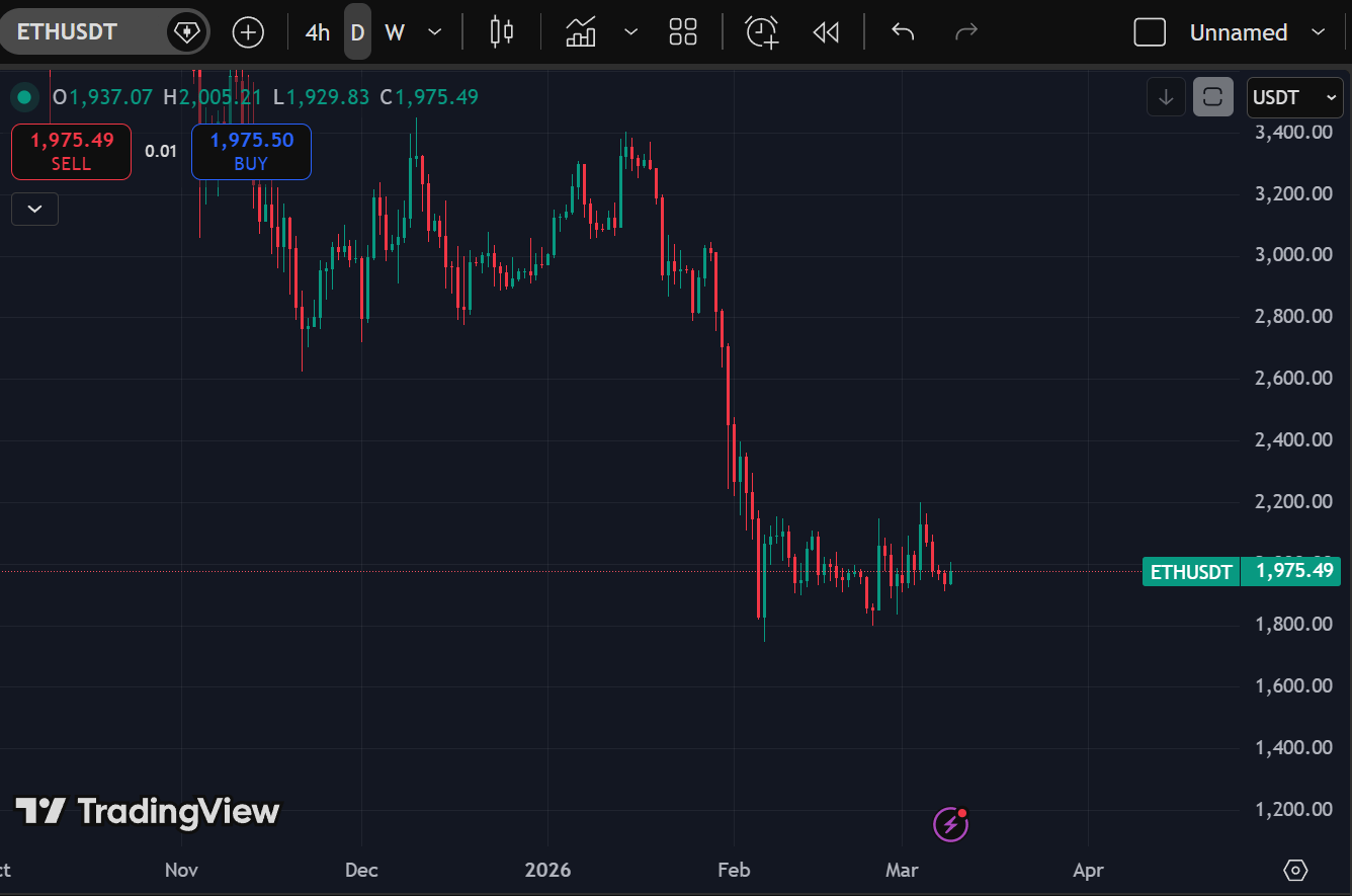 Ethereum: Tightening between $2,150 and $1,890. Highs getting lower, but lows holding. This creates a spring-like structure — the more it coils, the more force when it breaks. Reclaiming $1,990 with conviction opens $2,150 again. Losing $1,890 sweeps liquidity toward $1,830.