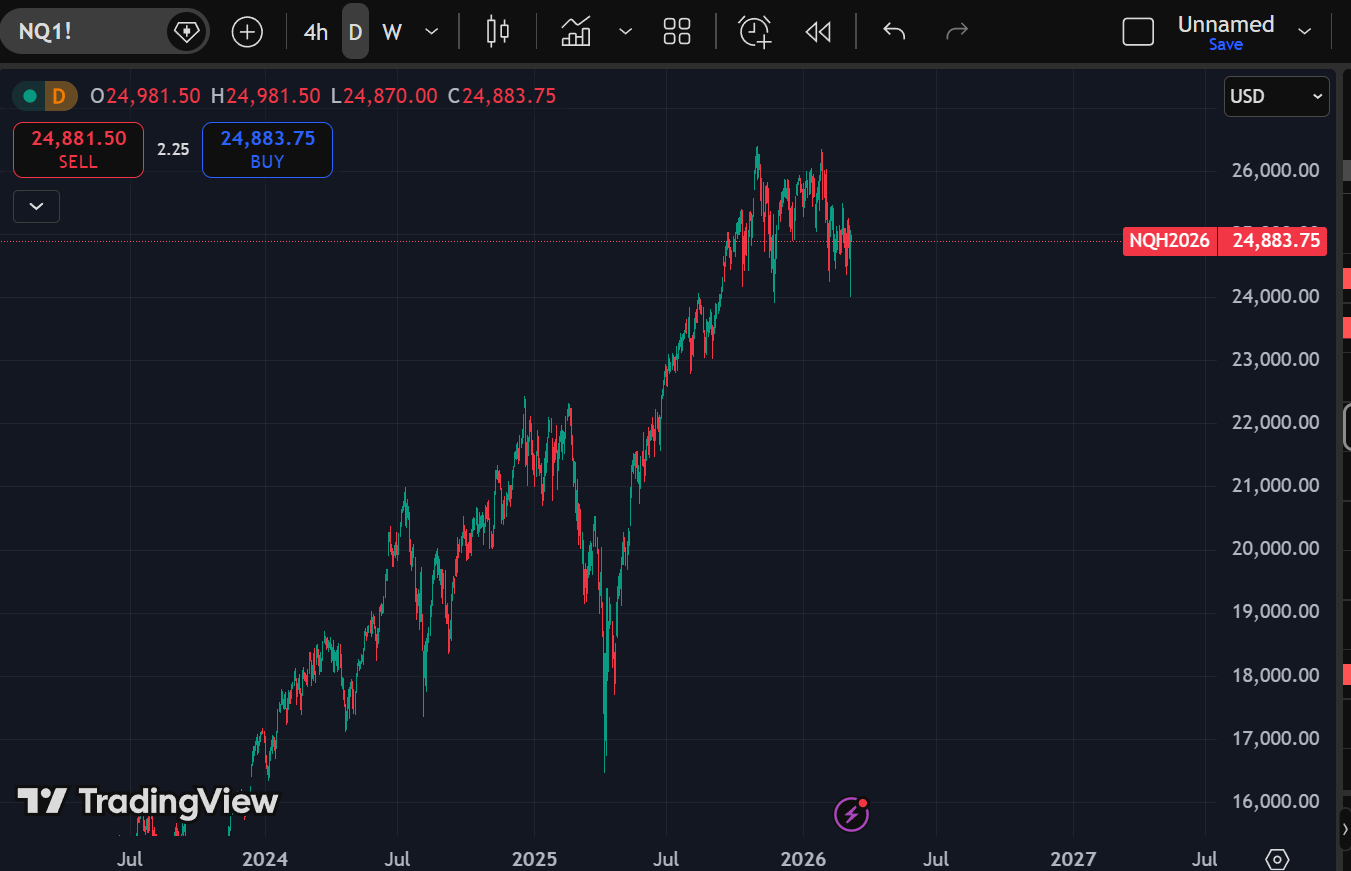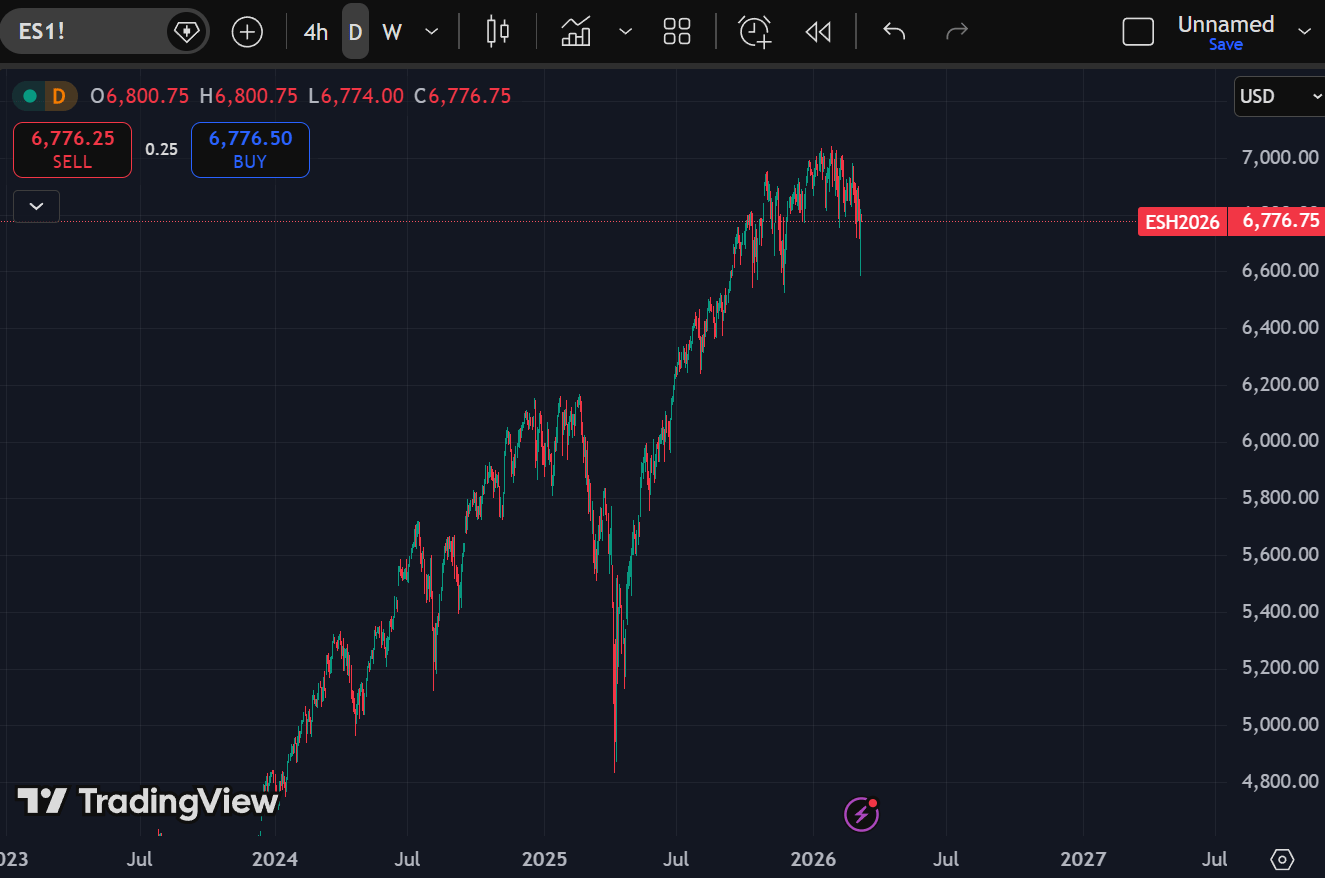 Equities are stalling. The S&P 500 failed to break 7,050 and is now at 6,777. The Nasdaq rejected at 26,427 and sits at 24,884. When multiple indices stall near highs simultaneously, the question is simple: is this consolidation before continuation, or quiet distribution?