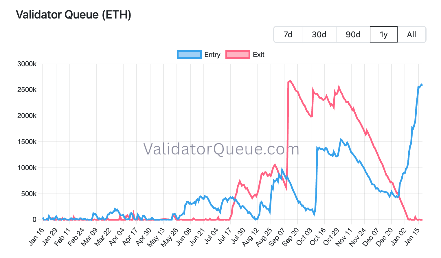 ETH staking queue surged to 2.62M ETH, while the exit queue is nearly empty. It now takes ~45 days to enter the validator set. More ETH is locking in, reducing circulating supply.