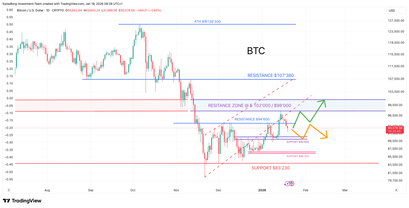 Resistance: $94,600 / $98,000 / $102,000