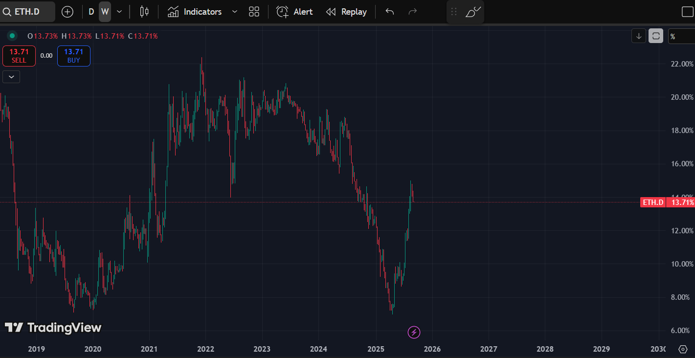 ETH losing 14% dominance rejection makes it vulnerable unless it defends 12%.